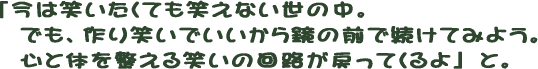 前回クリスマス号掲載の冨来神父様の講話の中で、笑い≠ノついての記事を、お読みになりましたか。