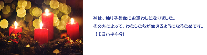 イエス・キリストの誕生を心をこめてお祝いしお祈りいたしましょう。皆様と世界中の全て人々が、主の救いへの希望と喜び、平和に満たされますように。