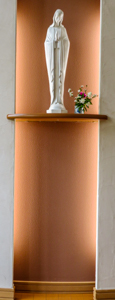聖堂のマリア様のご像は、新しい台座の上に固定し、今までの位置よりも高くしました。